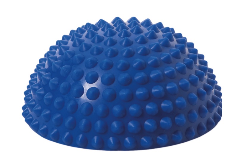 Eine luftgefüllte Halbkugel – made in Germany – aus Ruton mit angenehmen Noppen und einem Nadelventil zur Luftregulierung. Das Material Ruton ist geruchsneutral und sehr belastbar (bis 200kg), es ist latexfrei und besteht aus 100 % recyclingfähigem Kunststoff.