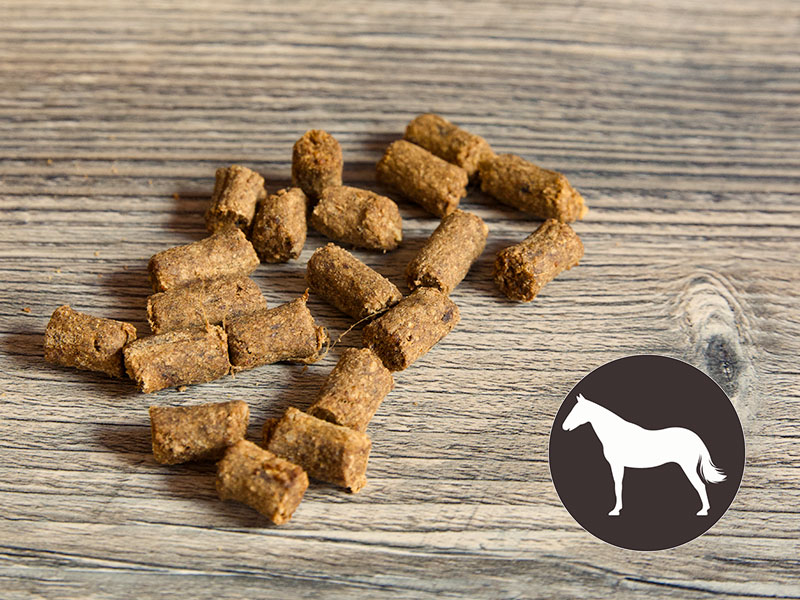 69% Pferdefleisch, 15,3% Kartoffelschalenmehl, 15% Glycerin, 0,5% Meersalz, 0,2% Apfelrohfaser