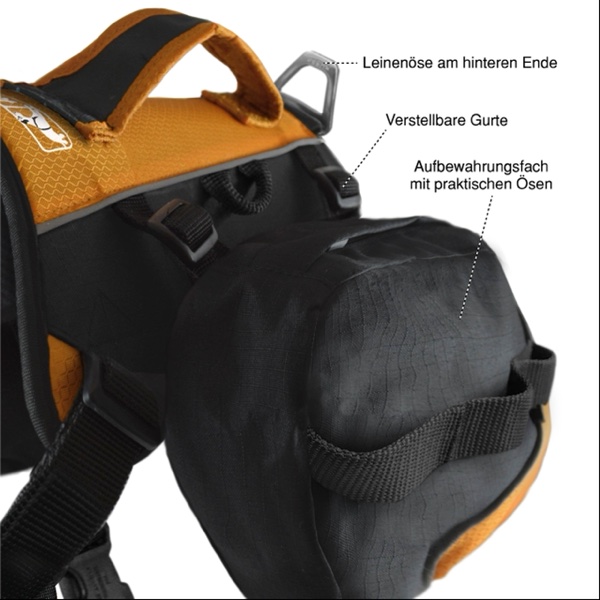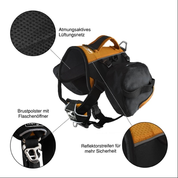 Der leichte und strapazierfähige Rucksack ist über acht verschiedene Einstellpunkte vollständig anpassbar. Er verfügt über eine ergonomische Wirbelsäulenunterstützung und bietet dank perfekter Balance eine gleichmäßige Gewichtsverteilung und ultimativen Komfort. Zusätzlich ist er mit einem großen Rückengriff ausgestattet, denn wir alle benötigen von Zeit zu Zeit einmal eine helfende Hand. Fülle ihn mit Leckerlis, Spielzeug, einem Erste-Hilfe-Set oder was immer dein Hund auf dem Weg brauchen könnte ….
